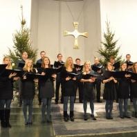 Raumfüllende Stücke wie das „O Magnum Mysterium“ von Morten Lauridsen und das von zwei Chören gesungene „A Hymn To The Virgin“ von Benjamin Britten konnten in der tollen Kirchenakustik ihren Klang voll entfalten. Nordische Lieder wie „Jul, jul, strålande jul“ und „Underbar en stjärna blid“ in der für die meisten Zuhörer ungewohnten Singsprache Schwedisch begeisterten das Publikum. Auch schwungvolle Stücke wie „The Earthly Choir“ und „Christmas Bells“ gehörten zu den Konzerthöhepunkten. Mit dem polnischen Wiegenlied „Lulajze Jezuniu“ war dann wider Erwarten der Zuhörer noch nicht Schluss, denn als Zugabe hatten wir uns das Carol „Christmas Time“ aufbewahrt. Zum tollen Erfolg des Abends hatten natürlich auch 5er Ticket mit den Stücken „The Man Who Can’t Be Moved“, „O Little Town Of Bethlehem“ und „O Come All You Faithful“ in besonderer Weise beigetragen.